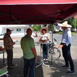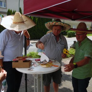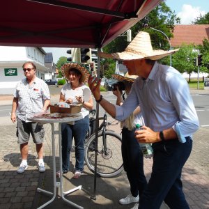 Viele erstaunte, sogar unsichere Blicke wechselten auf der Gemmericher Straße in Höhe des Stadtteilbüros Süd zwischen den Passanten am Freitag und am Dienstag hin und her. Personen mit großen Sombreros bewegten sich rund um einen Informationsstand und liessen sich dann mit diesen auffälligen Hüten fotografieren. Bitte nicht ansprechen, dachte so mancher oder vielleicht doch? Einige liessen sich begeistern, machten mit und liessen sich fotografieren.