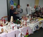Bernhard Tewes präsentierte seine neuen Schwibbögen und Weihnachtspyramiden, die er in vielen Stunden Handarbeit hergestellt hat. „Die Handarbeiten nach Originalvorlagen aus dem Erzgebirge sind nach wie vor sehr beliebt“, sagte Tewes. Elfriede Hagedorn und Monika König verkaufen für ihre Kreativgruppe „Scherenzauber Ahlen“ viele hübsche Dekosachen und Handarbeiten. Der Erlös dieses Standes  ist für den Wünschewagen des Arbeiter-Samariter-Bundes (ASB) gedacht. Er ermöglicht schwer kranken Menschen, sich einen Wunschtraum unter ärztlicher Begleitung zu erfüllen. Dafür hat auch der Veranstalter auf Standgebühren verzichtet.
