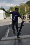 Zurück mit dem Blick auf die Aktionsflächen zeigten ab 14 Uhr Anfänger, Amateure und Profis unter anderem beim „Street Contest“ ihr Können. Jeder Teilnehmer durfte in zwei Läufen von jeweils einer Minute zeigen, was er so alles auf die Straße, die Rampe oder die anderen Hindernisse brachte.
