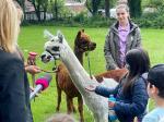 Im Vorfeld hatte Lisa-Marie Rammler einen Brief von den Aliens geschrieben. „Wir haben keine grüne Farbe, wir sind flauschig und schüchtern und wenn ihr leise seid, dann kommen wir auch zu euch“, so die Botschaft in diesem Brief, sagte Lisa-Marie Rammler. In kleinen Gruppen durften sie sich den beiden "außerirdischen" Alpakas draußen auf der Wiese vor dem Jugendzentrum nähern. „Geht das Ganze ruhig an, Alpakas sind Fluchttiere“, gab Christina Köster von der Alpakafarm einige Hinweise, "und bitte nicht den Kopf streicheln, denn dann glauben die aus Südamerika stammenden Tiere, man wolle mit ihnen kämpfen". „Oh sind die flauschig und wenn man sie streichelt, kitzelt es ein bisschen“, lauteten einige Kommentare der neugierigen Kinder. Lisa-Marie Rammler zeigte sich mit der Alpaka-Aktion schließlich hochzufrieden: „Man sieht, dass die Kinder nicht nur Spaß an den Geschichten sondern auch einen direkten Zugang zu den Tieren haben.“