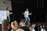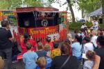 Das Familienzentrum vom Wetterweg stellte gar mit das "Kleine Ich bin Ich" ein Theaterstück auf die Bühne. Begeistert wurden die neuen Kostüme, die von der Bürgerstiftung Ahlen gesponsert wurden, von den Kleinen präsentiert. Der Offene Ganztagsbereich der Diesterwegschule sorgte mit einem Gruppentanz für gute Laune und der Hermann Huerkamp als Moderator versuchte immer wieder das Publikum mit einzubeziehen. Auf der Bühne ging das Programm mit dem Juk-Haus, den Cheerleadern „Diamonds Elite“ von „Vorwärts“ Ahlen weiter. Den Abschluss des Programms gegen 17.30 Uhr bildete die Kick-Bo-Darbietung by Mao. In den Pausen unterhielt Valentinos Puppenbühne die kleinen und großen Besucher. "Alle meine Vorstellungen waren ausverkauft", frohlockte Stefan Hoppe vom Puppentheater und freute sich über den großen Andrang.