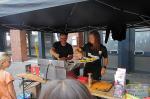 Ob türkisch oder bulgarisch, ob Gelati oder Falafel, die Tische an den Ständen waren randvoll gedeckt. Jeder war eingeladen, auch mal etwas Neues oder Unbekanntes zu probieren. Natürlich durfte die legendäre Pommesschaukel der Fleischerei Crabus nicht fehlen. Da viele Geschäftsleute einfach Tische und Bänke vor ihre Geschäfte stellten, hatte das Stadtteilfest sogar ein wirklich südliches Stadtflair. So kam Urlaubsstimmung auf.