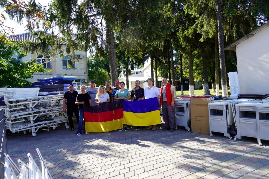 Nun ist der Transport angekommen und die Freude war bei Mitarbeitern der Stadt Khotyn und des dortigen Krankenhauses über spezielle Werkzeugkisten für chirurgische Eingriffe und Knochenimplantate für die Trauma-Abteilung, multifunktionale Krankenbetten, spezielle Matratzen und Nachttische groß.