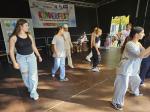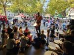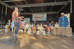 Aber dann ging es auch endlich mit dem vielfältigen Programm auf der Bühne los. Es wurde gesungen, getanzt, gefeiert und vor allem auch getrommelt, was einen riesigen Andrang auf die rund 30 Schlaginstrumente mit sich führte. Der erfahrene Trommler und Animateur Baye zog mit seiner Trommelperformances die Kinder in den Bann und animierte sie zum mitmachen.