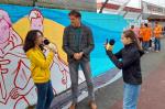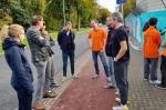 Die städtische Mitarbeiterin der Stadtplanungsabteilung Eva Reinecke stellte heraus, dass weiterhin Projekte durchaus zu entwickeln seien, um das Quartier und das Wohnumfeld schöner zu gestalten, denn das Förderprogramm wird fortgesetzt. Wer Ideen habe, dürfe sich gerne beim Stadtteilbüro melden, versicherte Huerkamp. Auch Bent Gosda von Rot-Weiss-Ahlen zeigte sich mit Luka Tankulic bei einer Besichtigung am Dienstagmorgen begeistert von der Motiv- und Farbfreude und freute sich, dass die Zuschauer nun nicht mehr mit einer tristen Mauer empfangen werden. Das sogar punktgenau zum Spiel der DFB U20-Nationalmannschaft gegen Polen am kommenden Freitag, denn bis dahin wird die Mauer komplett mit den neuen Motiven erstrahlen.
