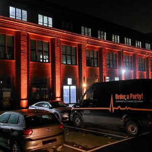 Das Stadtteilforum Süd/Ost e. V. und die Projektgesellschaft Westfalen mbH illuminierten gemeinsam die Lohnhalle der Zeche Westfalen und zeigten sich damit solidarisch mit dem Orange Day „Internationaler Tag gegen Gewalt an Frauen“. Die Maschinenzentrale wurde von der DZA (Dezentrale Ahlen) in Szene gesetzt und wenn man ganz genau hinsieht sieht man sogar einen Skater. Ein großen Dank an Michael Oertel (Order a Party!), der mit seiner Veranstaltungstechnik für das richtige Orange Licht der Lohnhalle sorgte.