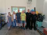 Foto 1: v.l.n.r.: Julia Schröder (Leiterin Bürgerhaus), Jürgen Stich (Fachbereichsleiter Öffentlichkeitsarbeit, Kultur, Bildung, Soziales), Frank Beier (Vorstandsmitglied „Ukraine Hilfe Ahlen e.V.“), Uwe Schnafel (Vorsitzender „Ukraine Hilfe Ahlen e.V.“), Torsten Kroll (Feuerwehr Teltow), Marcel Petri (Feuerwehr Teltow);
