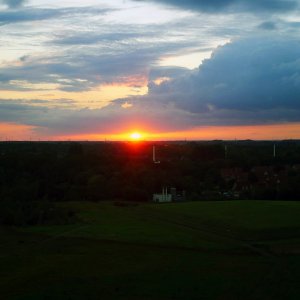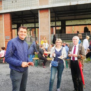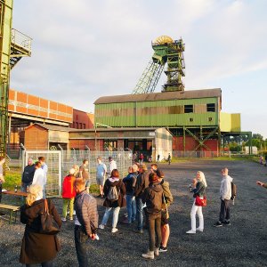 Überrascht über die hohe Teilnehmerzahl zeigten sich alle Macher des Fördervereins Fördertürme, wie Christian Tripp, Hermann Huerkamp, Fabian Recker, Jörg Brehme und Michael Lunau, als sie unisono nach der Veranstaltung feststellten, "damit haben wir nicht gerechnet". Denn immerhin stiegen 80 Besucher am Sonntagabend auf dem Förderturm und genossen sichtlich die Weitsicht und zum Schluss sogar den Sonnenuntergang über Ahlen. "Wir hatten rund um den Turm fast die doppelte Anzahl", verdeutlichte Hermann Huerkamp, "das zeigt, dass die Ahlener die Zeche lieben". Eingeladen hatte der Förderverein Fördertürme mit der Projektgesellschaft Westfalen mbH und in der Zeit von 19 bis 21 Uhr wurde Schacht 1 geöffnet. Zum Vertreiben der Wartezeit gab es leckere Würstchen und Kaltgetränke und damit die Möglichkeit sich gemütlich mit Vereinsvertretern auszutauschen.