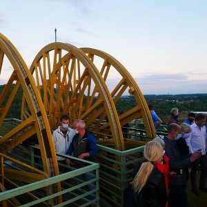Auf Abstand und unter Einhaltung der bekannten Hygieneregeln konnte der Förderturm erklommen werden und den Besuchern gelang es die Abendstimmung über Ahlen meist per Foto-Handy einzufangen. "Schön zu sehen, dass die Hygienebestimmungen so problemlos von allen eingehalten werden," freute sich Fabian Recker, der 2. Vorsitzende des Fördervereins und der Vorsitzende Christian Tripp ergänzte abschließend. "Es freut mich total zu erleben, wie viele Menschen wieder Lust auf die Turmbesteigung hatten. Sogar eine Familie aus Rheda-Wiedenbrück war mit dem Fahrrad da!" Als nächste Aktion soll der Förderturm am Sonntag, 1. Advent wieder geöffnet werden. Dann gibt es erneut die Möglichkeit einen Blick auf Ahlen zu werfen.